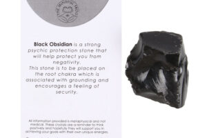 Black obsidian (a type of volcanic glass) stones are said to promote truth and are commonly used as an aid in crystal healing and scrying. Harness its rumoured healing properties to strengthen spiritual connections. Comes in a cotton drawstring pouch with matching information card. Size, shape and colour of stone will vary due to its unique nature.