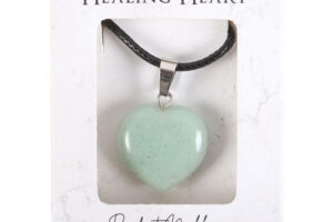 Attract abundance and promote spiritual growth with this green aventurine healing crystal heart necklace. Makes a meaningful gift for those in need of an extra dose of positivity, strength, and care. Strung on a 16″ cord with lobster clasp and extender chain.