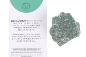 Green aventurine crystals are said to relieve stress and are commonly used as an aid in crystal healing. Harness its rumoured healing properties to overcome nerves and promote confidence. Comes in a cotton drawstring pouch with matching information card. Size, shape and colour of stone will vary due to its unique nature