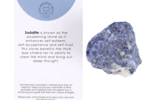 Sodalite crystals are said to help in decision making and are commonly used as an aid in crystal healing. Harness its rumoured healing properties to overcome negative thinking. Comes in a cotton drawstring pouch with matching information card. Size, shape and colour of stone will vary due to its unique nature.Â