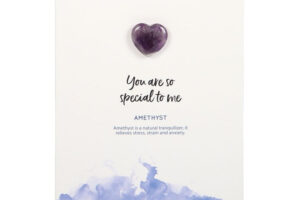 - Give the gift of love and care with this meaningful crystal greeting card. Includes a small amethyst crystal heart attached to a greeting card with ‘You are so special to me’ text. Amethyst is known as a natural tranquilizer, used to relieve stress, strain and anxiety. Card left blank inside. Envelope included.