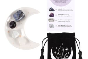 Stress Healing Crystal Set with Moon Trinket Dish-Sodalite, Amethyst, Howlite & Clear Quartz