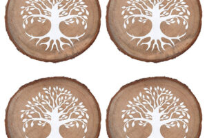 A set of 4 wooden coasters featuring a Tree of Life design. Perfect for any contemporary home and a great conversation starter with friends and family.