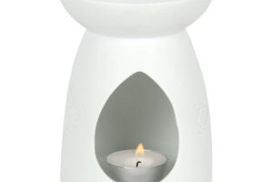 This contemporary oil burner/wax melt burner offers a sleek and minimal design. The ceramic burner is accented with the seven signs of the chakra. Simply place wax melts or fragrance oils to the dish and allow the aromas to infuse into the home.