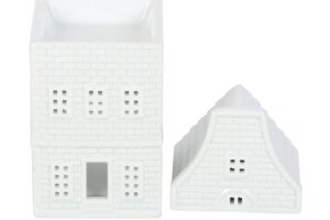 Create a warm and inviting atmosphere with this charming white ceramic oil burner and wax warmer, shaped like a Nordic house. Designed for use with both wax melts and fragrance oils, this stylish burner adds a cosy winter touch to any home. Simply place a single standard tealight in the space at the back and add a few drops of diluted fragrance oil or wax melts in the bowl. Always remove the lid whilst in use.